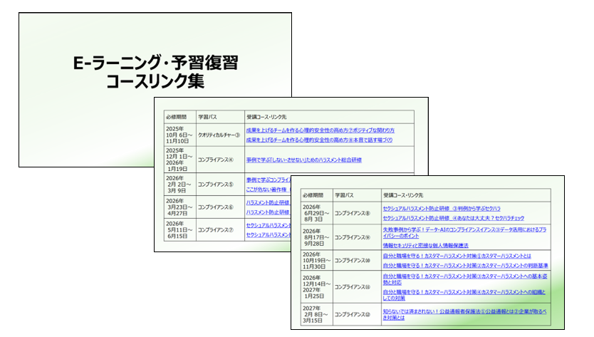 コンプライアンス系だけでも非常に多くのコースが揃っており、これなら数年先まで重複なく、受講者を飽きさせずに継続できると確信しました。法改正への対応を含め、コンテンツが着実にアップデートされていく点も安心材料となりました。