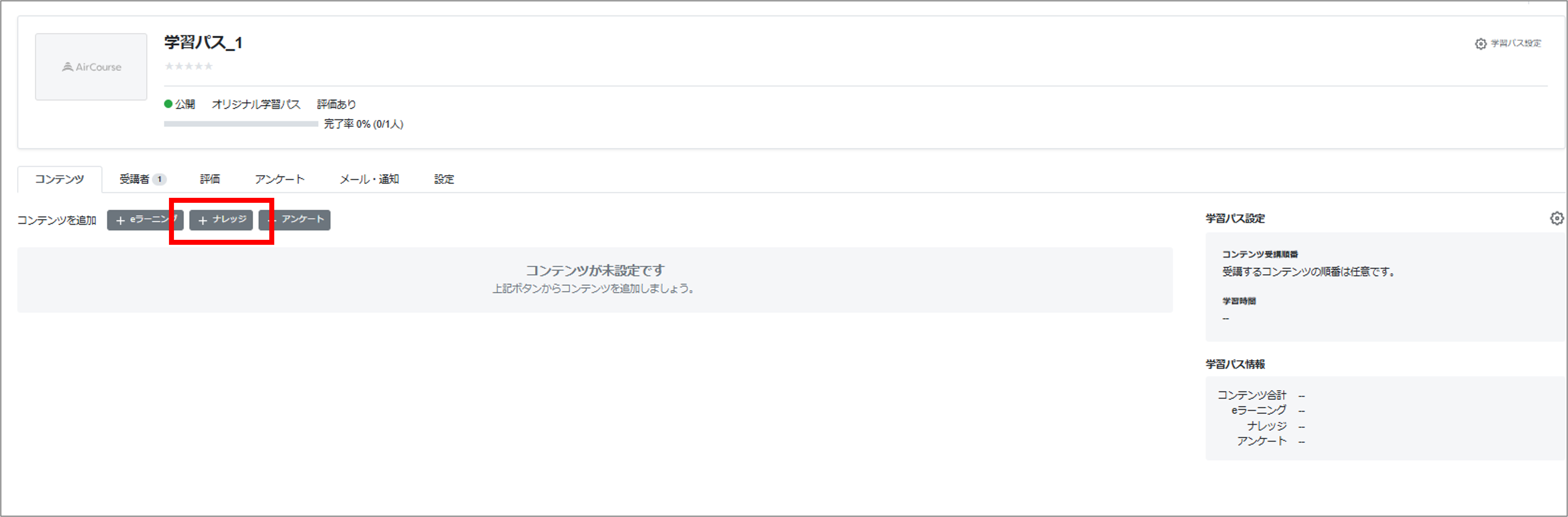 AirCourseナレッジを追加する場合には「ナレッジ」をクリックします。