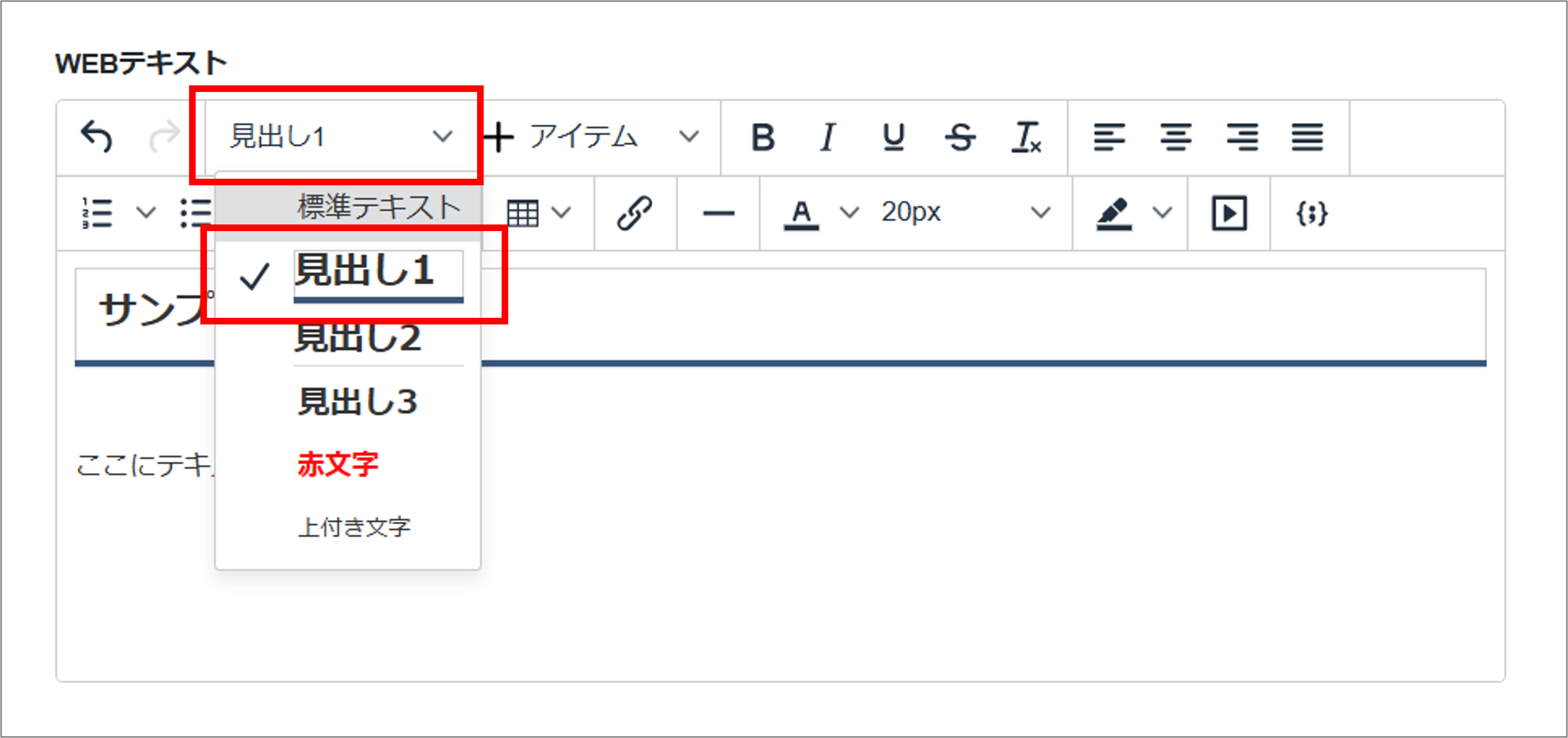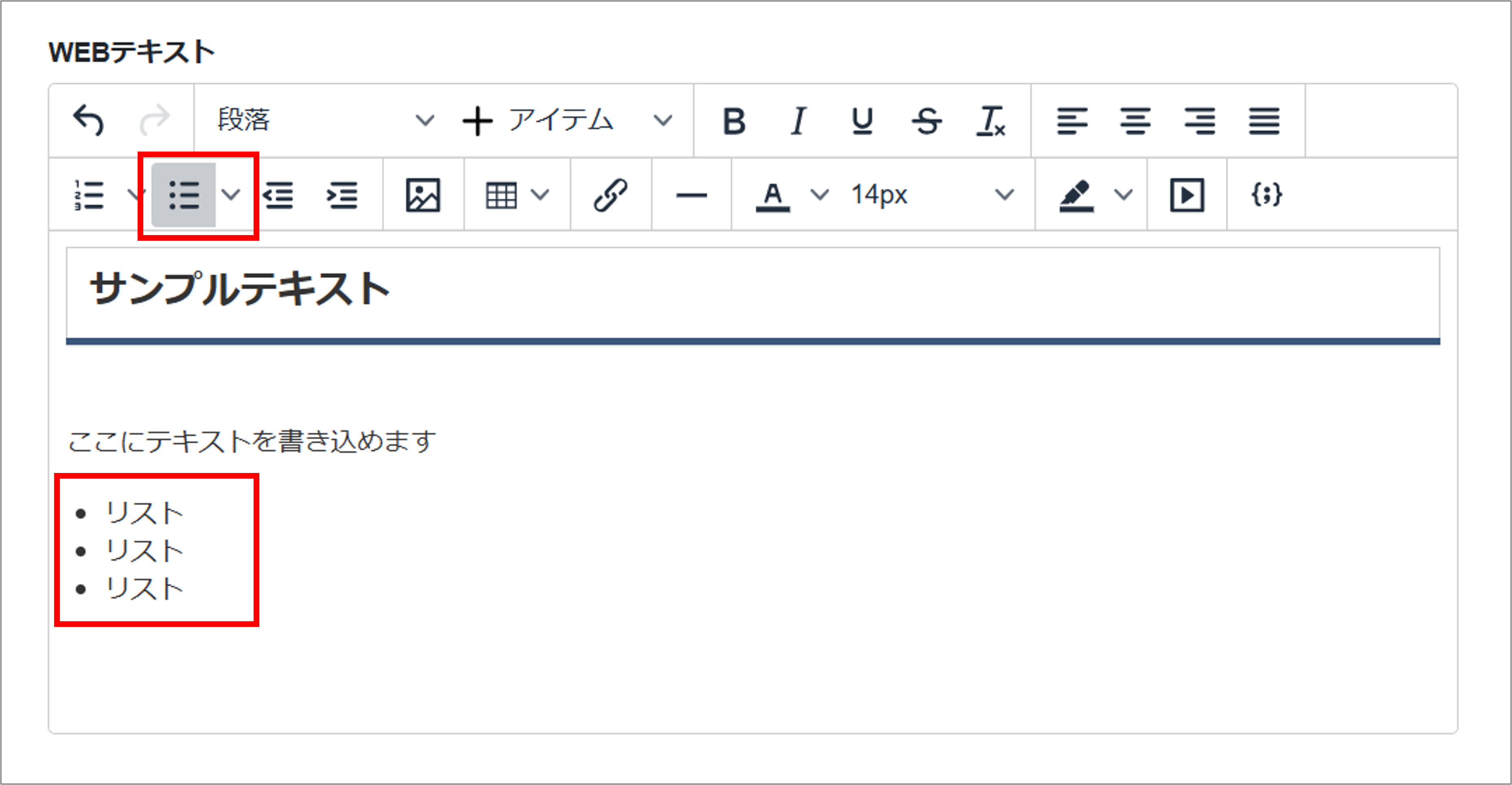 テキストエディタには、各種の書式のボタンがあり、文字書式を指定できます。