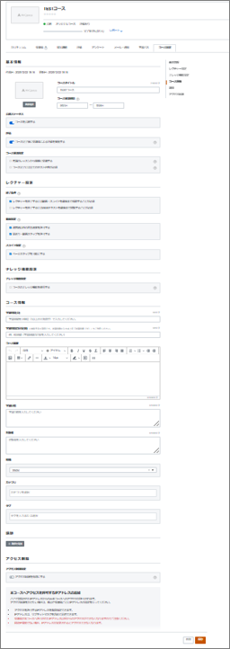 コースのトップページの右上方にある「コース設定」ボタンをクリックすると、各種のコース情報を入力する画面が表示されます。