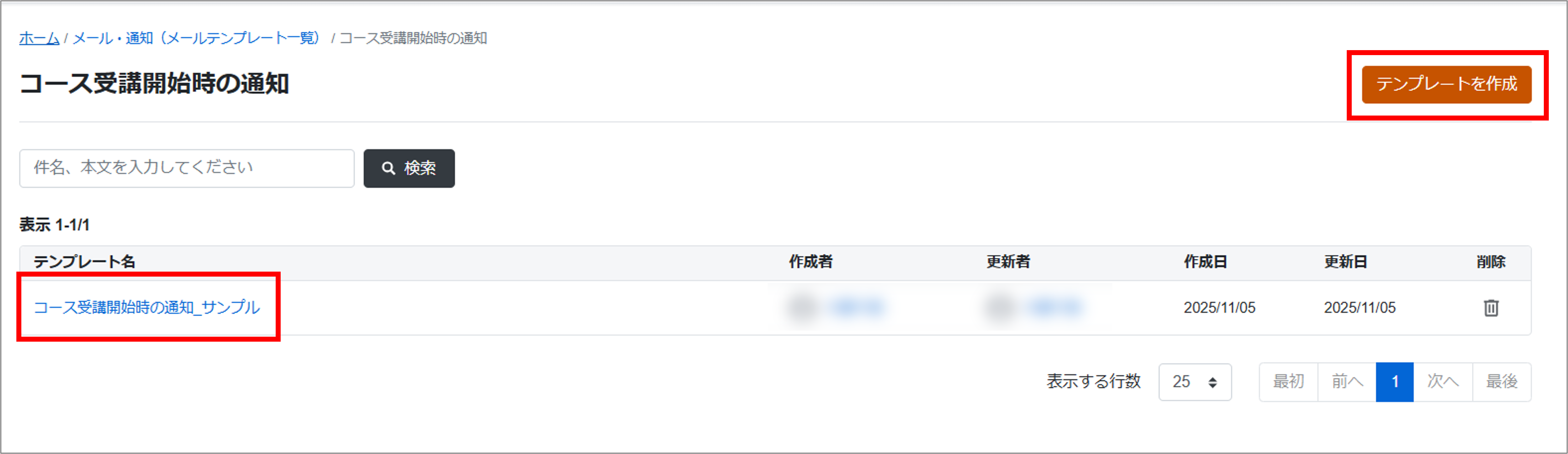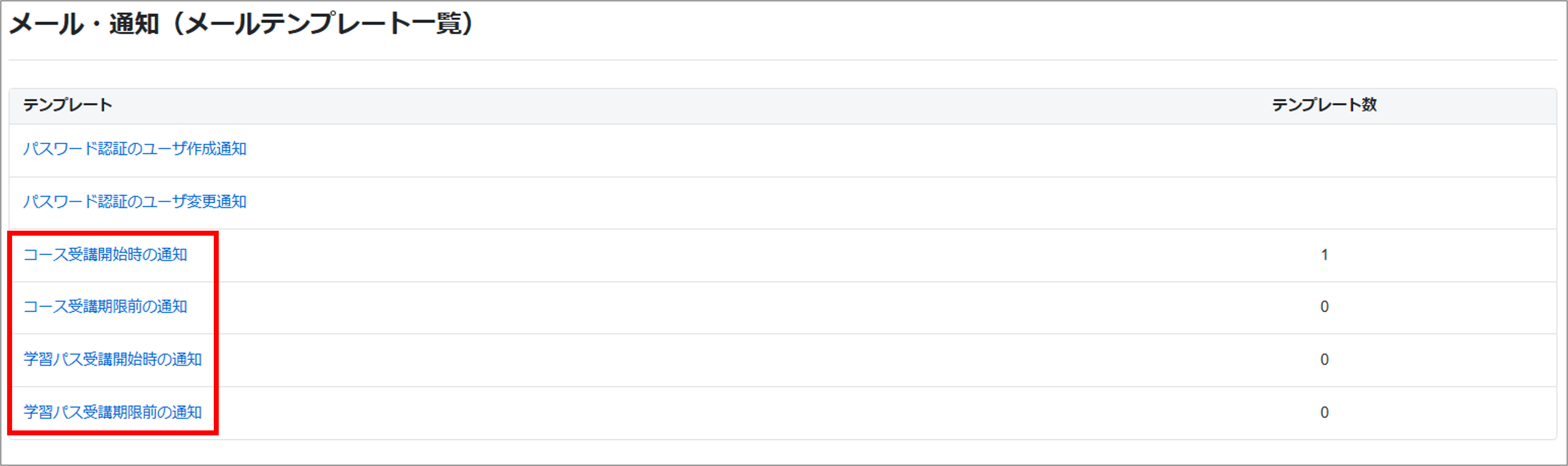 全体管理者またはマネージャーは、以下の通知メールテンプレートの確認や新規テンプレートの作成ができます。