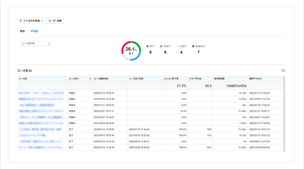 • 受講率向上:詳細な進捗管理による未受講者への効果的なフォロー体制構築