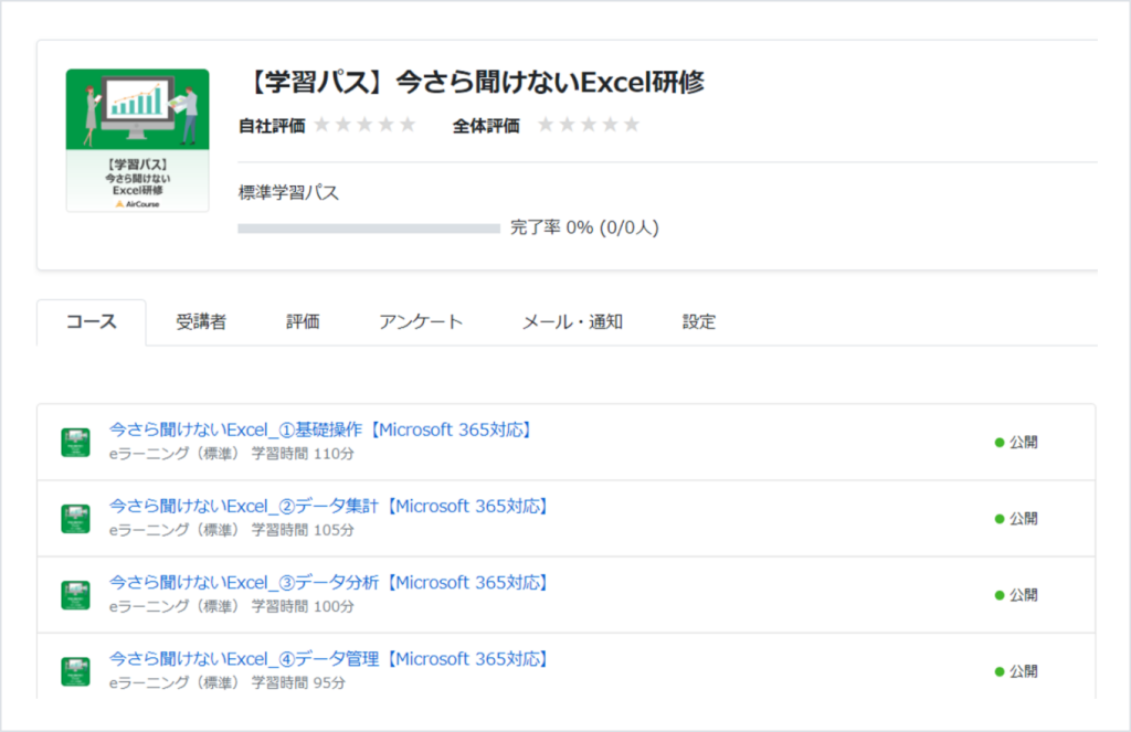 研修後のアンケートや理解度テストの実施は、管理がしやすい「AirCourse(学習管理システム)」がおすすめです。