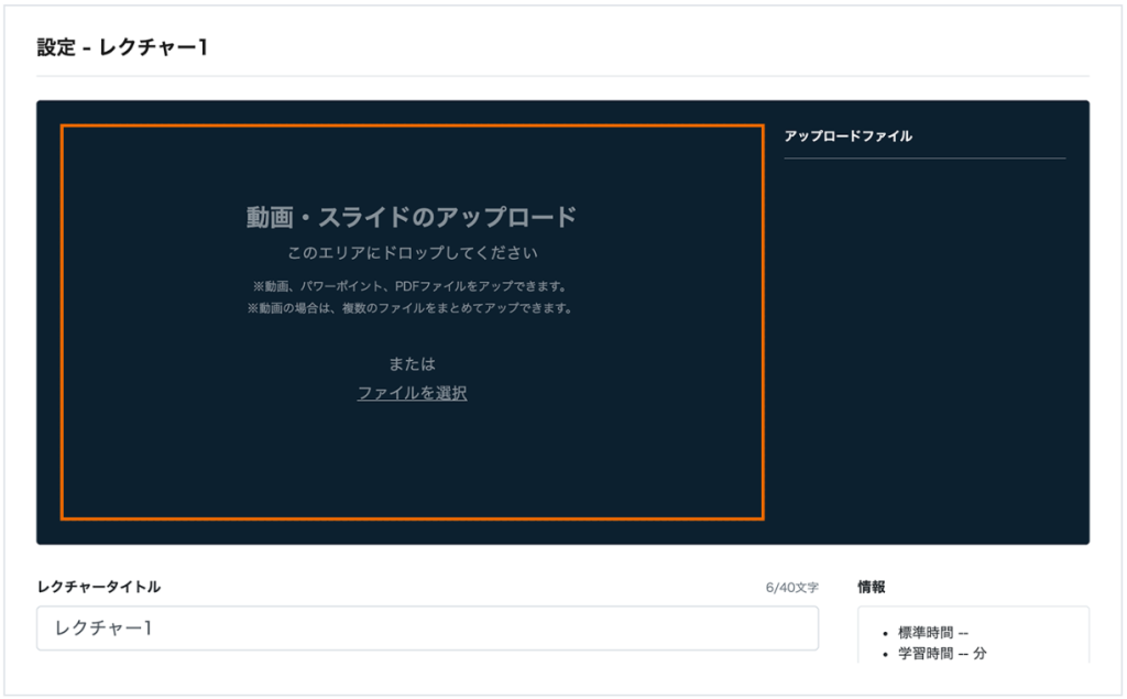 ▼動画・PowerPoint・PDFなどを登録できる教材アップロード画面のイメージ