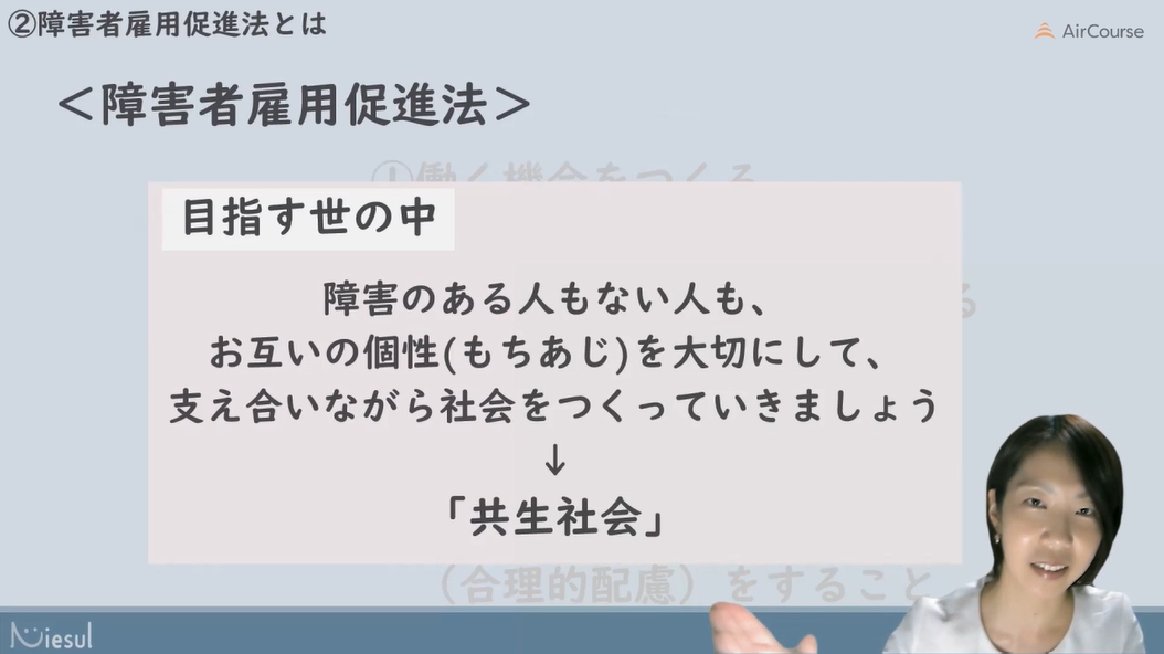 ・障害者雇用促進法とはどのような法律か理解する ・障がいの種類と特徴、障がい者に対する職場で起こりやすいハラスメントを理解する ・職場で必要とされる配慮や対応を考え、安心して働ける環境を整えられるようになる