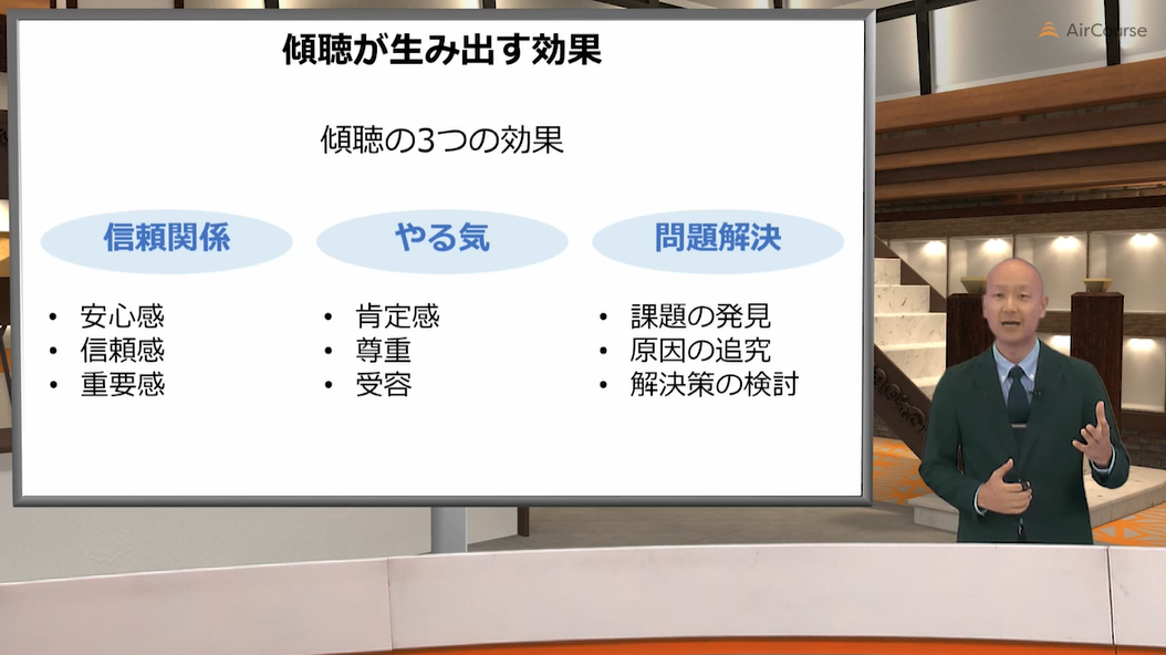 ・傾聴がなぜビジネスの現場で重要か理解する ・自身の会話を振り返り、傾聴の改善点を見つけられるようになる ・自分なりの傾聴ルールを考え、習慣化できるようになる
