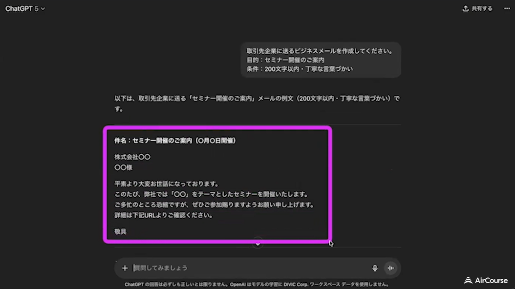 ・AI社会の理念と原則、利活用の指針を理解し、安全かつ公正に活用するための考え方を説明できるようになる ・効率的に望む出力を得るために、プロンプトエンジニアリングの基礎知識を理解する ・プロンプト事例を通じて、精度の高いプロンプティングを業務で実践できるようになる