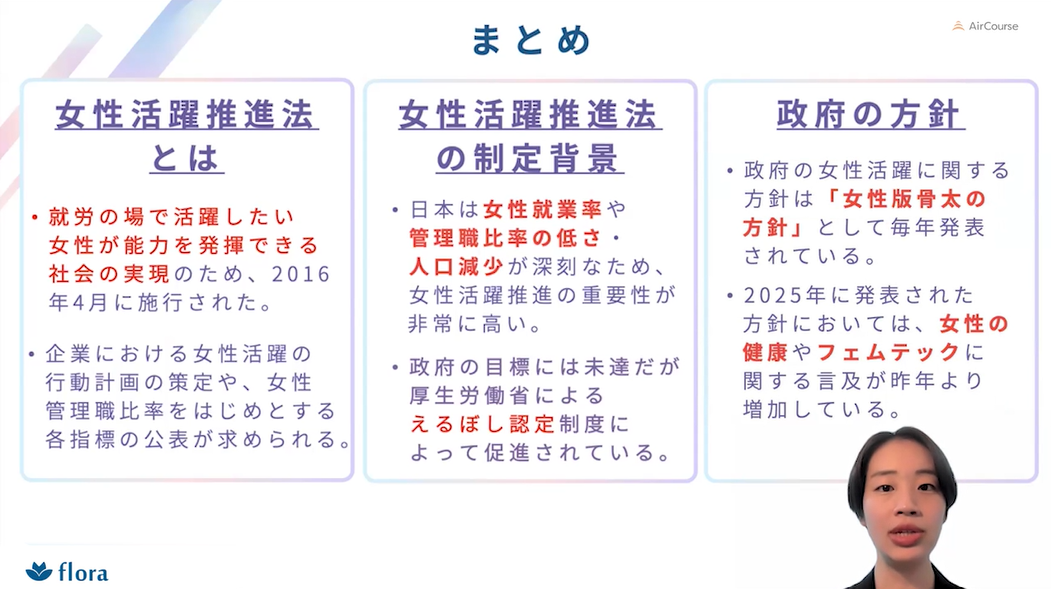 ・職場における女性活躍推進に興味がある方 ・女性の健康や働き方に関する課題を学び、実務に活かしたい方 ・会社の人事・総務ご担当の方
