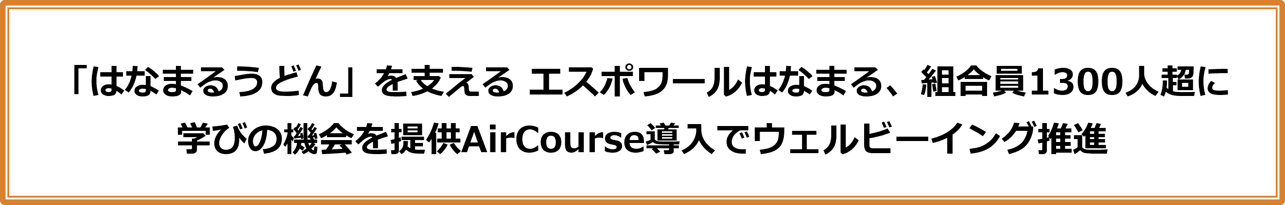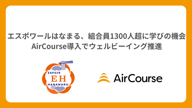 エスポワールはなまるは「はなまるの組合員だからこそ体験できる、幸せや感動の機会を創る ~共鳴・共感・共振・共歩・共創~ 」を理念に掲げ、 組合員と共に「はなまるの未来」を築いていく取り組みを進めています。その一環として、組合員一人ひとりが「等しく」「自分らしく」「学び続けられる」環境を整えることが不可欠と考え、このたびAirCourseの導入を決定しました。