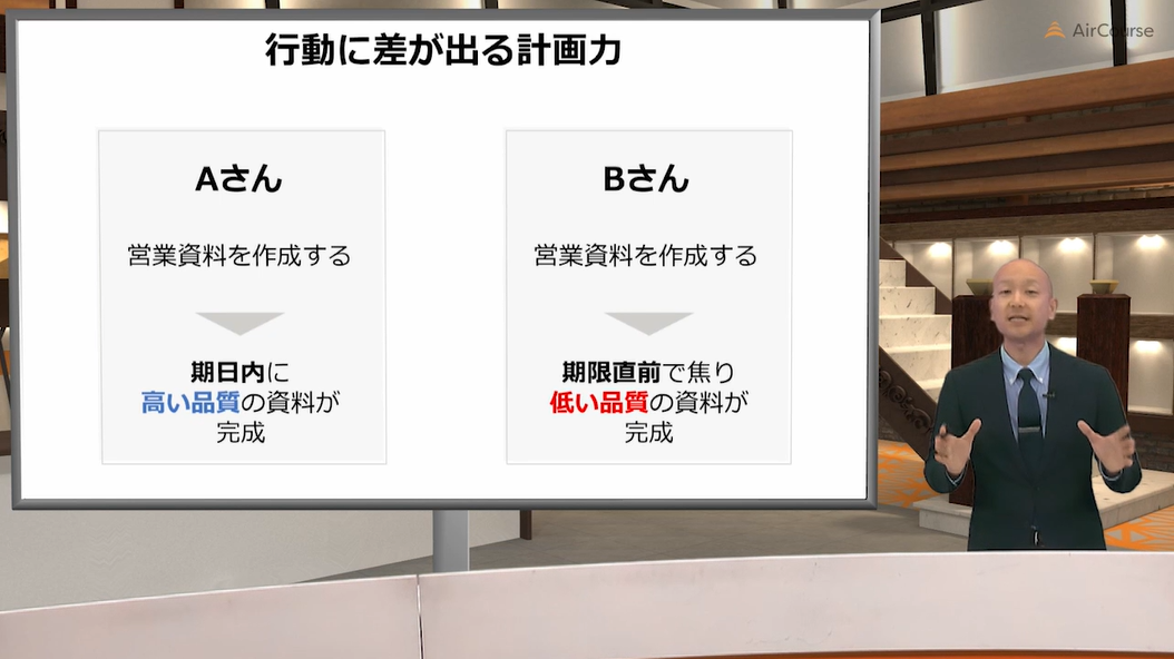 ・計画力の定義と目的を理解する ・再現性のある課題解決プロセスを自身の業務に適用できるようになる ・計画を継続的に見直し、改善する習慣を身につける